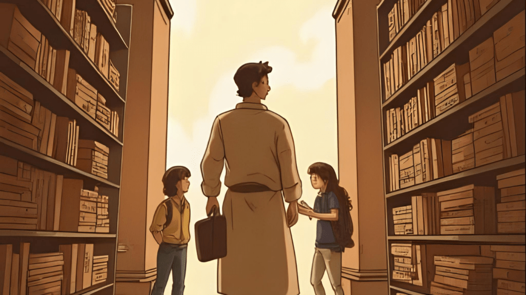 Ein Ausbilder und seine SchĂĽler*innen. Bild mit Canva KI erstellt.